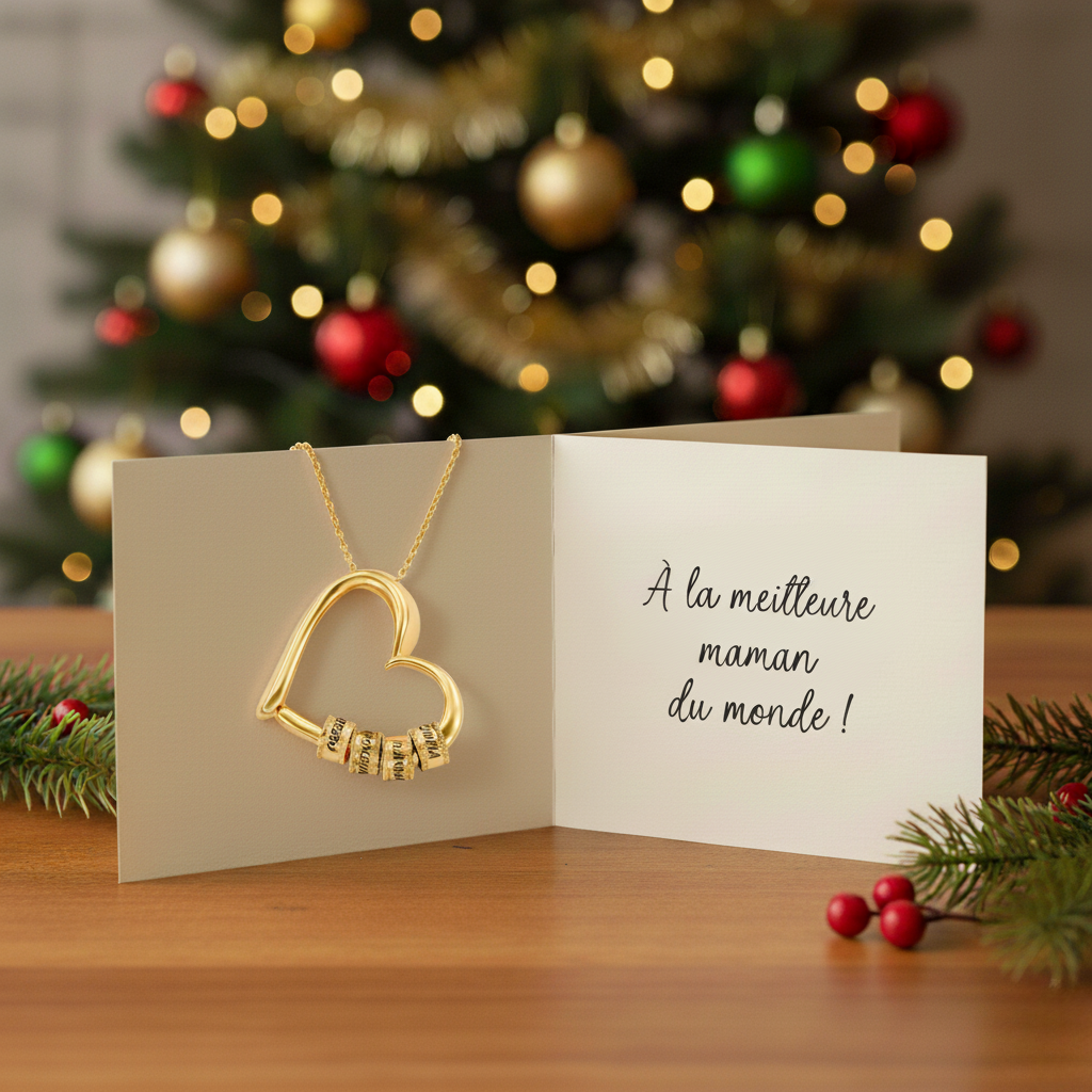 Collier Cœur Personnalisable – 5 Prénoms Gravés, Cadeau d’Amour